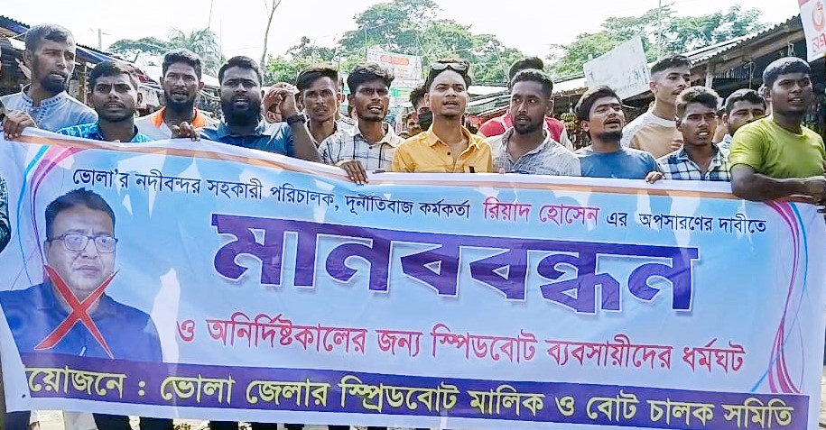 দুর্নীতির অভিযোগে ভোলায় বিআইডব্লিউটিএ সহকারী পরিচালকের অপসারণের দাবীতে মানববন্ধন