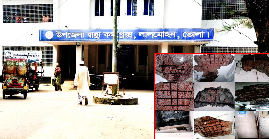 প্রায় ৩ লাখ মানুষের স্বাস্থ্যসেবার একমাত্র ভরসাস্থল ভোলার লালমোহন উপজেলা স্বাস্থ্য কমপ্লেক্স। মানুষের স্বাস্থ্যসেবা দেওয়া এই উপজেলা স্বাস্থ্য কমপ্লেক্সটি এখন নিজেই যেন রোগীতে পরিণত হয়েছে। উপজেলা স্বাস্থ্য কমপ্লেক্সের দুইতলা বিশিষ্ট ভবনটি জরাজীর্ণ হয়ে পড়েছে। ওই ভবনটিতে রয়েছে জরুরি বিভাগ, অন্তঃবিভাগ ও প্যাথলজি বিভাগসহ কয়েকটি গুরুত্বপূর্ণ অফিস কক্ষ। ওই ভবনটির বিভিন্ন স্থান থেকে এখন খসে পড়ছে পলেস্তরা, ফাটল ধরেছে ভবনের ছাদ, বিম ও দেয়ালে, বৃষ্টি হলে চুঁইয়ে পড়ে পানি। এতে চিকিৎসক, নার্স ও রোগীসহ স্বাস্থ্য কমপ্লেক্সের অন্যান্য কর্মকর্তা-কর্মচারীরা চরম নিরাপত্তাহীনতায় ভুগছেন। এরআগেও জরুরি বিভাগের ছাদের পলেস্তরা খসে পড়ে অল্পের জন্য প্রাণে রক্ষা পান রোগী ও চিকিৎসকসহ কর্তব্যরতরা।