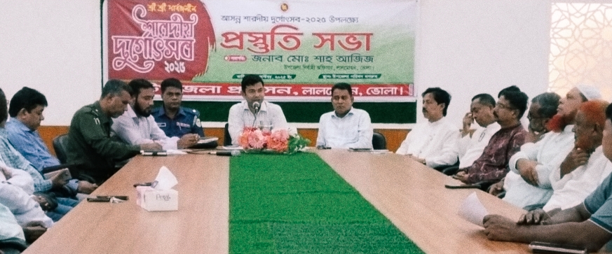 আসন্ন শারদীয় দুর্গোৎসব ২০২৫ উপলক্ষে ভোলার লালমোহনে প্রস্তুতি সভা অনুষ্ঠিত হয়েছে। সোমবার (২২ সেপ্টেম্বর) সকাল ১১ টায় লালমোহন উপজেলা প্রশাসনের আয়োজনে উপজেলা পরিষদের হলরুমে এ সভা অনুষ্ঠিত হয়েছে।