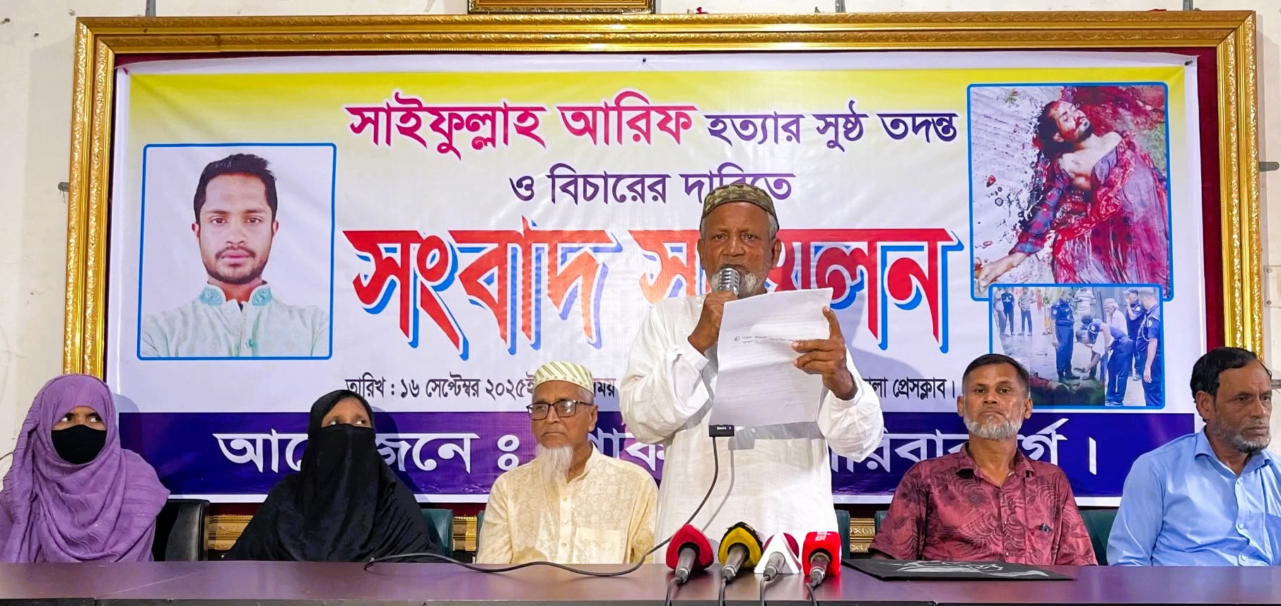 ভোলায় সাইফুল্লাহ আরিফ হত্যার সুষ্ঠ তদন্ত ও বিচারের দাবিতে সংবাদ সম্মেলন পরিবারের