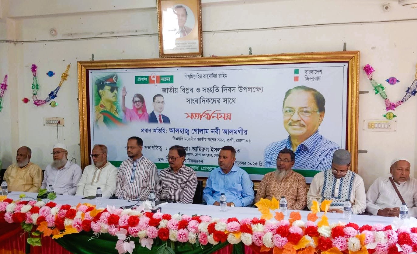 ভোলা প্রেসক্লাবে সাংবাদিকদের সাথে মতবিনিময় করলেন বিএনপির মনোনীত সংসদ সদস্য প্রার্থী গোলাম নবী আলমগীর