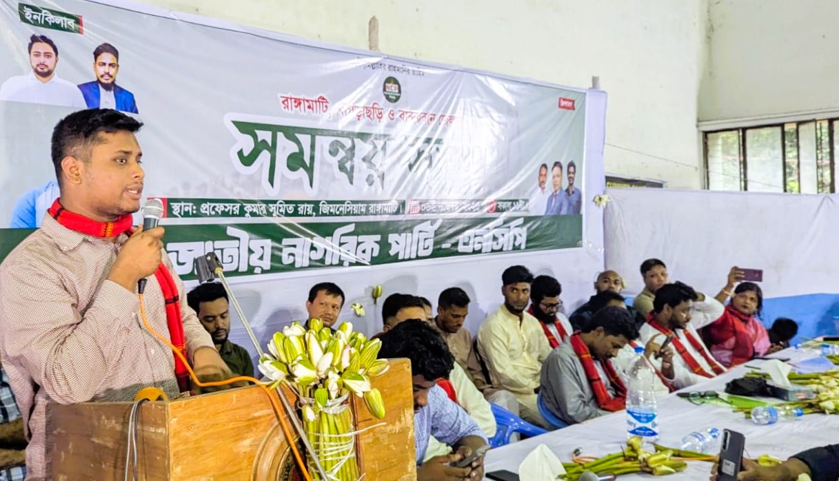 এনসিপি রাঙ্গামাটি জেলার প্রধান সমন্বয়কারী বিপিন জ্যোতি চাকমার সভাপতিত্বে অনুস্টিত উক্ত সভায় অন্যান্যর মধ্যে বক্তব্য রাখেন এনসিপির কেন্দ্রীয় যুগ্ন সমন্বয়কারী জুবাইরুল হাসান, বিভাগীয় সমন্বয়কারী এ এস এম সুজাউদ্দিন,পার্বত্য অঞ্চল তত্তাবধায়ক ইমন ছৈয়দ, শ্রমিক শক্তির কেন্দ্রীয় যুগ্ন আহবায়ক কলিন চাকমা,বান্দরবানের প্রধান সমন্বয়কারী শহিদুর রহমান সোহেল,খাগড়াছড়ির প্রধান সমন্বয়কারী এডভোকেট মনজিলা ঝুমা প্রমুখ।