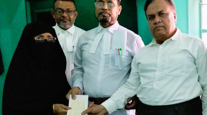 ভোলায় মরহুম আইনজীবী মুজিবুল হক’র পরিবারকে কল্যান তহবিল ও বেনিভোলেন্ট ফান্ডের চেক হস্তান্তর