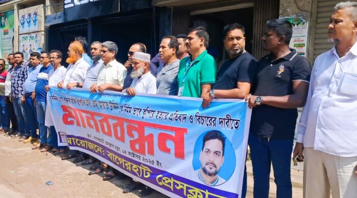 বাগের হাটে সাংবাদিক হত্যার বিচার ও শাস্তির দাবিতে মানব বন্ধন